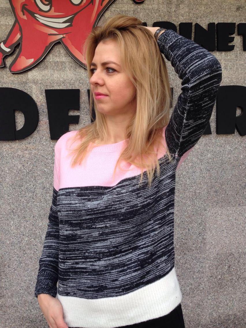 Am comandat un pulover cu o combinație de culori drăguță și veselă. Este o nebunie între roz, alb și negru. Tare drăguț și interesant așa că m-am gândit să împărtășesc cu voi această bucurie dar când să ies la poze nu mă puteam hotărâ cu ce să îl asortez. Nimic nu mă mulțumea așa că am găsit combinația perfectă. Negru se potrivește cu orice și în plus această culoare se potrivea și pe puloverul meu deci am scăpat de stres. Materialul este moale și nu foarte gros.