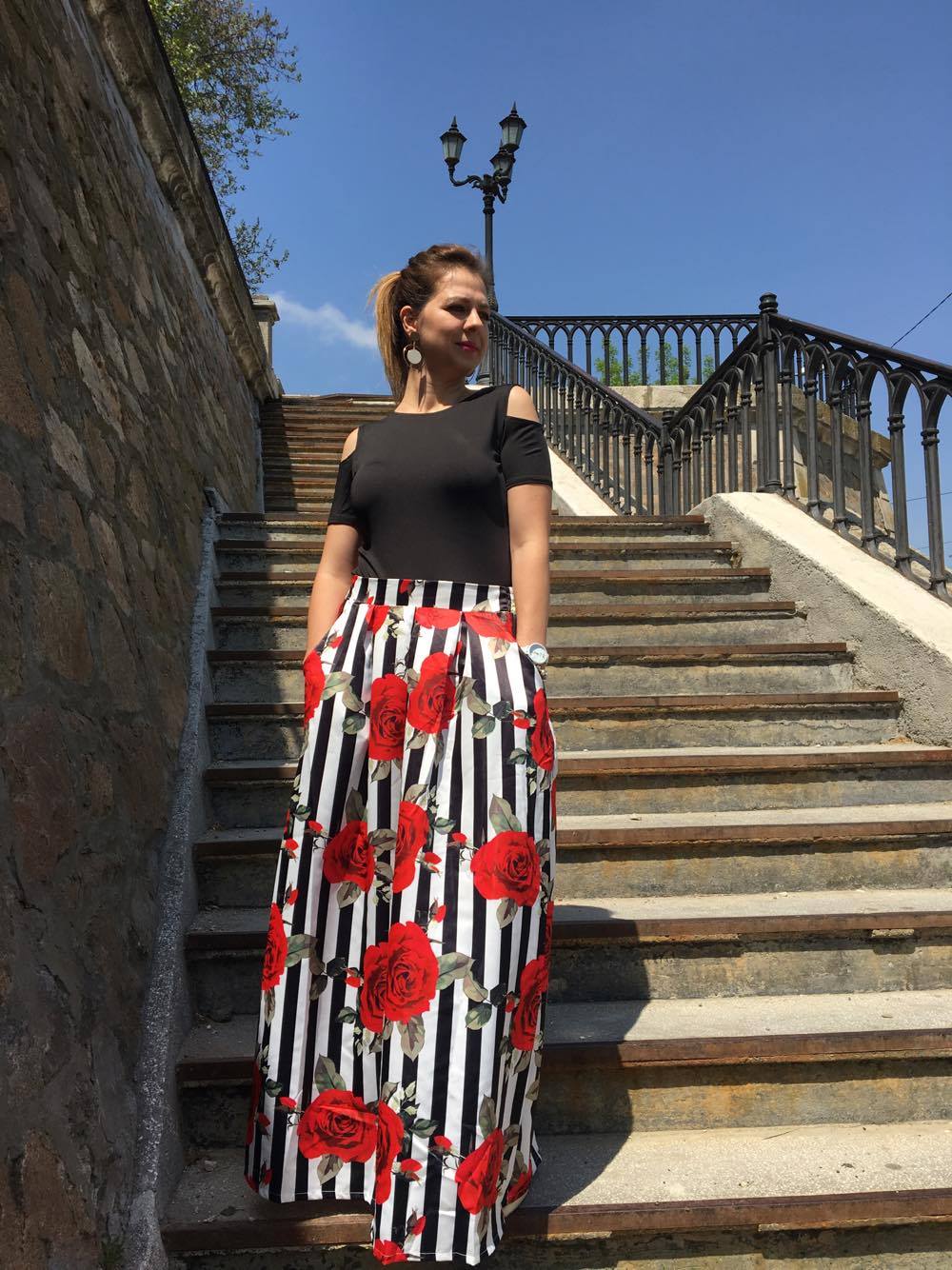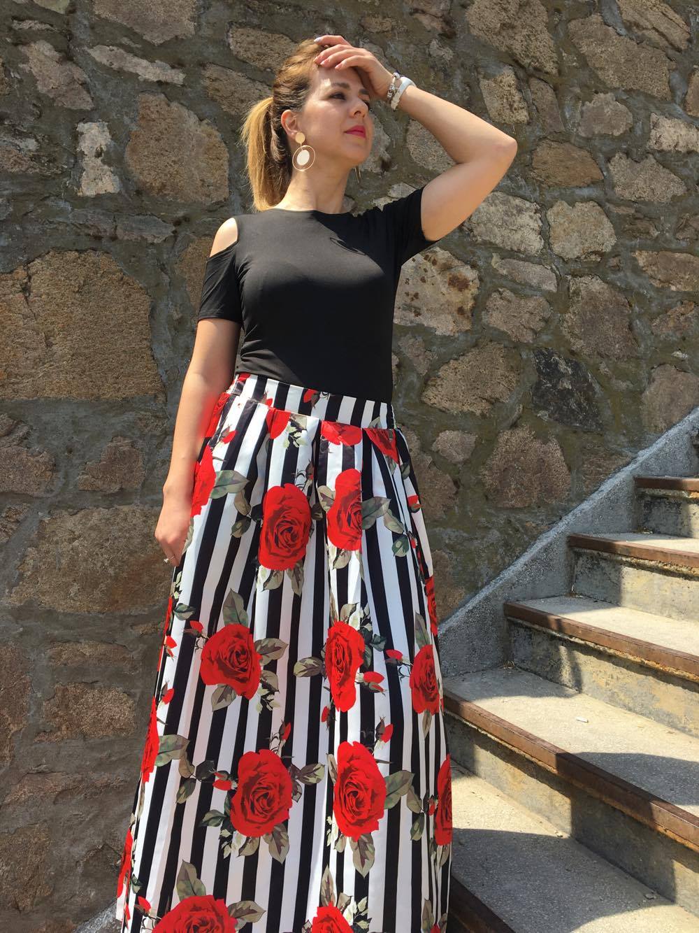 Inițial am tot analizat câteva seturi de pe site și am pus ochii pe o bluză și o fustă midi. Pentru că știam că mi-am mai luat o fustă midi și nu mi-a plăcut deloc cum se așeza, n-am vrut să mai risc. Mi-am ales un set compus dintr-o bluză neagră elastică și o fustă lungă. Mi-a fost teamă inițial că nu va fi suficient de lungă și pentru că eu sunt înaltă, riscam să se vadă urât. Aceasta este printre puținele fuste lungi pe care le am și îmi plac foarte mult. Cred că voi lua cu mine această ținută în vacanță dacă îmi rămâne loc în bagaj. Modelul mi-a plăcut prea mult și am riscat puțin, iar acum nu regret deloc.