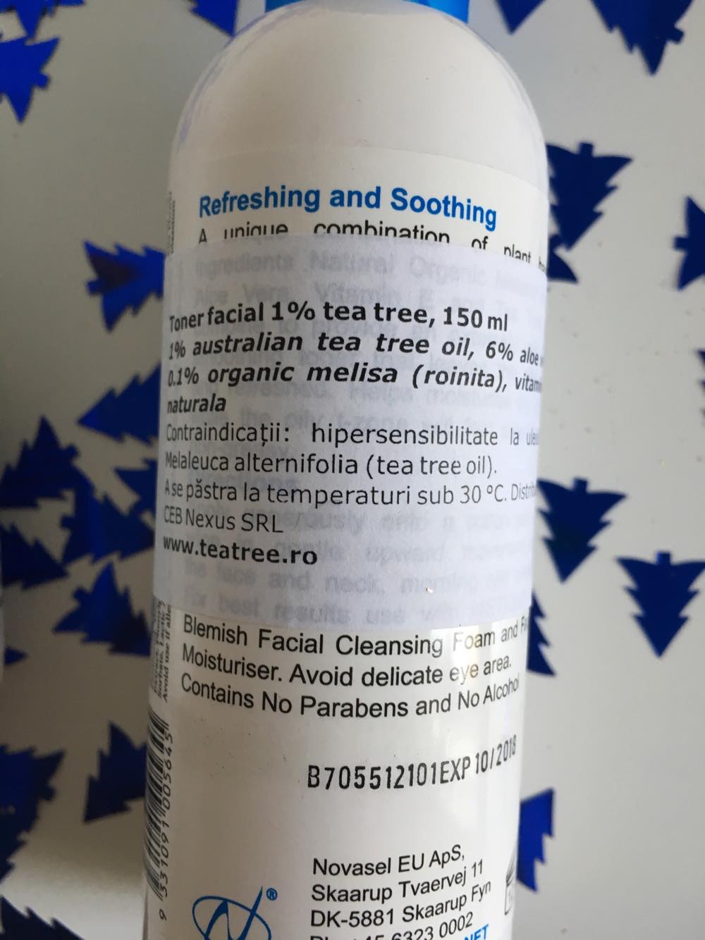 Tonerul facial are ca principale ingrediente: 1% australian tea tree oil, 6% aloe vera, 0.1% organic melisa (roiniță) și vitamina E natură. Acesta special pentru făcut pentru curățarea blândă a tenului și matifierea acestuia în zona T. Se recomandă a fi folosit pentru pielea acneică sau pătată.