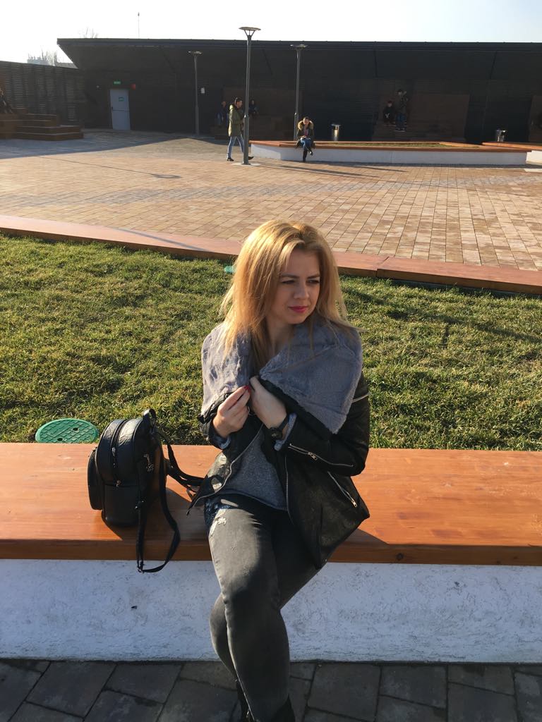 Interior pufos, piele moale, geacă călduroasă și un fermoar pe diagonală. Cam asta oferă geaca aceasta și trebuie să recunosc că sunt îndăgostită de ea. Este potrivită pentru vremea asta care este ușor călduroasă. La nevoie, merge ridicat gulerul și închis cu niște capse. În felul ăsta îmi acopăr gâtul și nu-mi va mai fi la fel de frig.