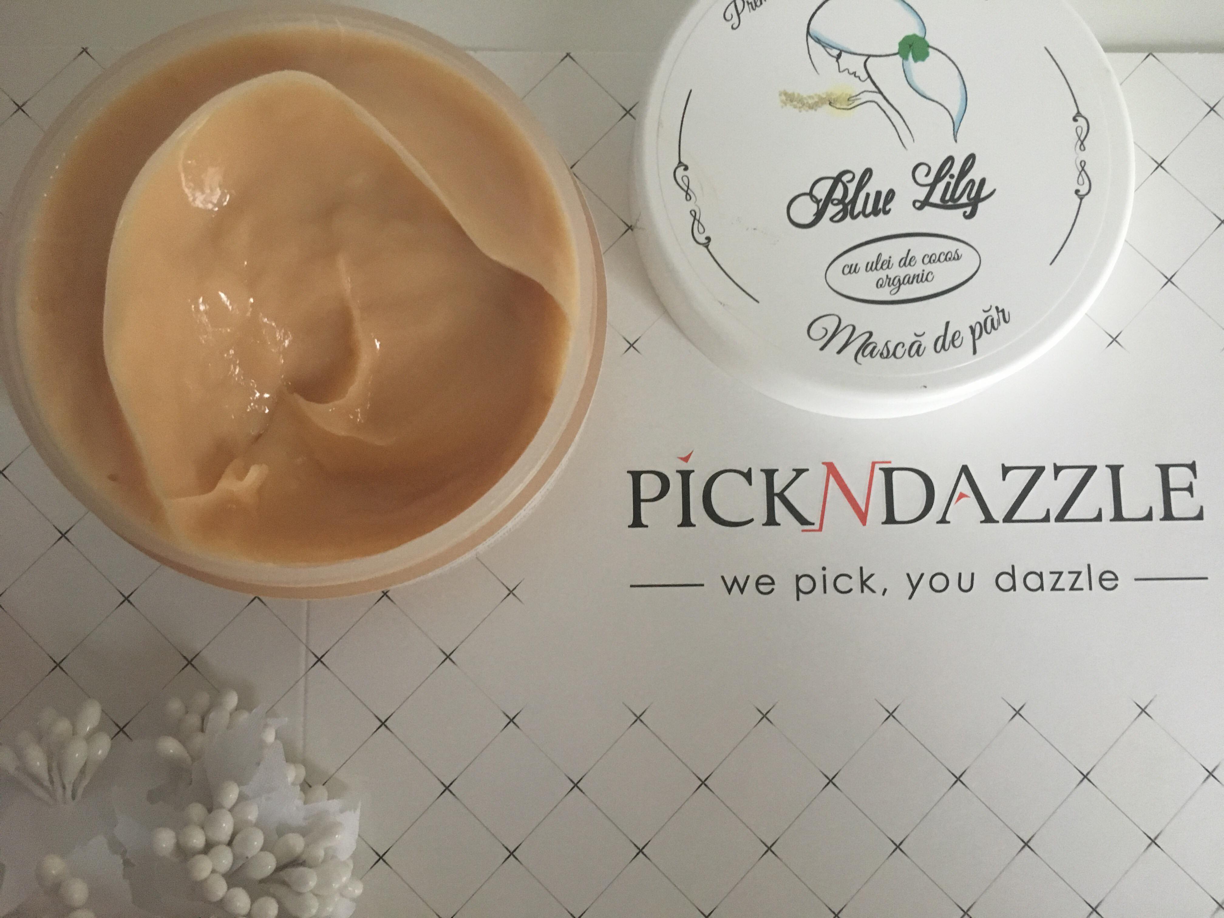 Mască de păr cu cocos de la Blue Lily este cel mai nou produs românesc intrat în beauty box-ul Pick N Dazzle. Până acum nu le-am mai văzut, Am primit și un pliant informatic cu produsele pe care le are. Sunt curioasă cum se va împăca părul meu cu ea. O voi pune la treabă cu prima ocazie.