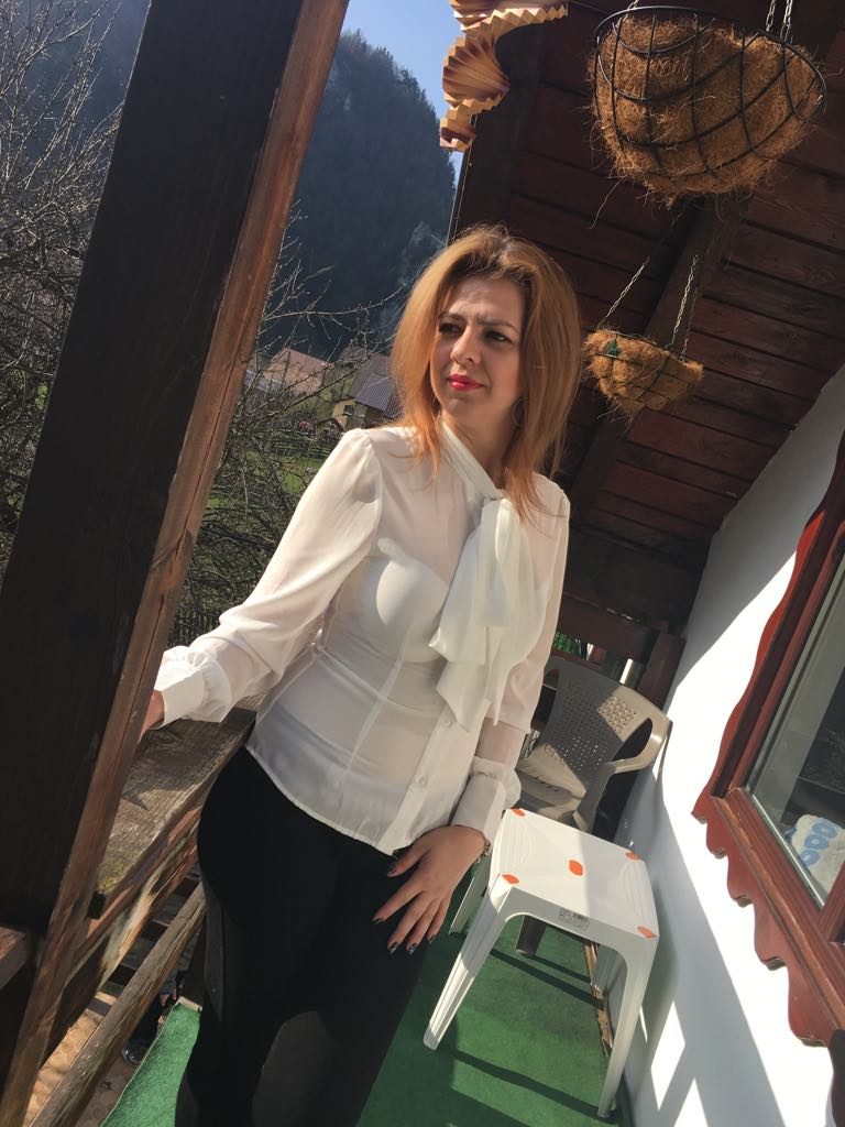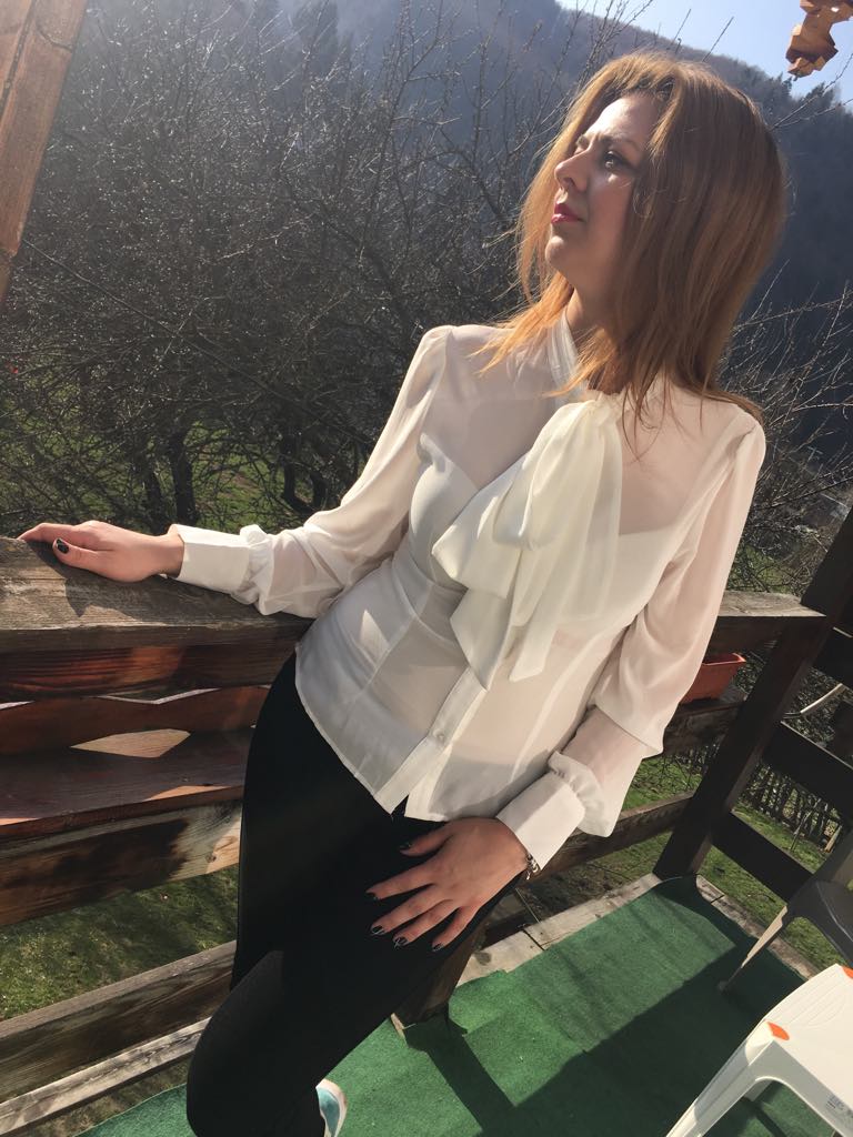 Chiar dacă am primit-o acum mai bine de o lună, m-am tot uitat la ea cum aș putea s-o port pentru a se vedea cât mai bine. Niciodată nu mi-au plăcut pozele și am abandonat. De această dată am zis că o iau la munte poate găsesc un cadru perfect și întâmplarea a făcut ca priveliștea de la balcon era atât de frumoasă, încât bluza mea albă a strălucit.