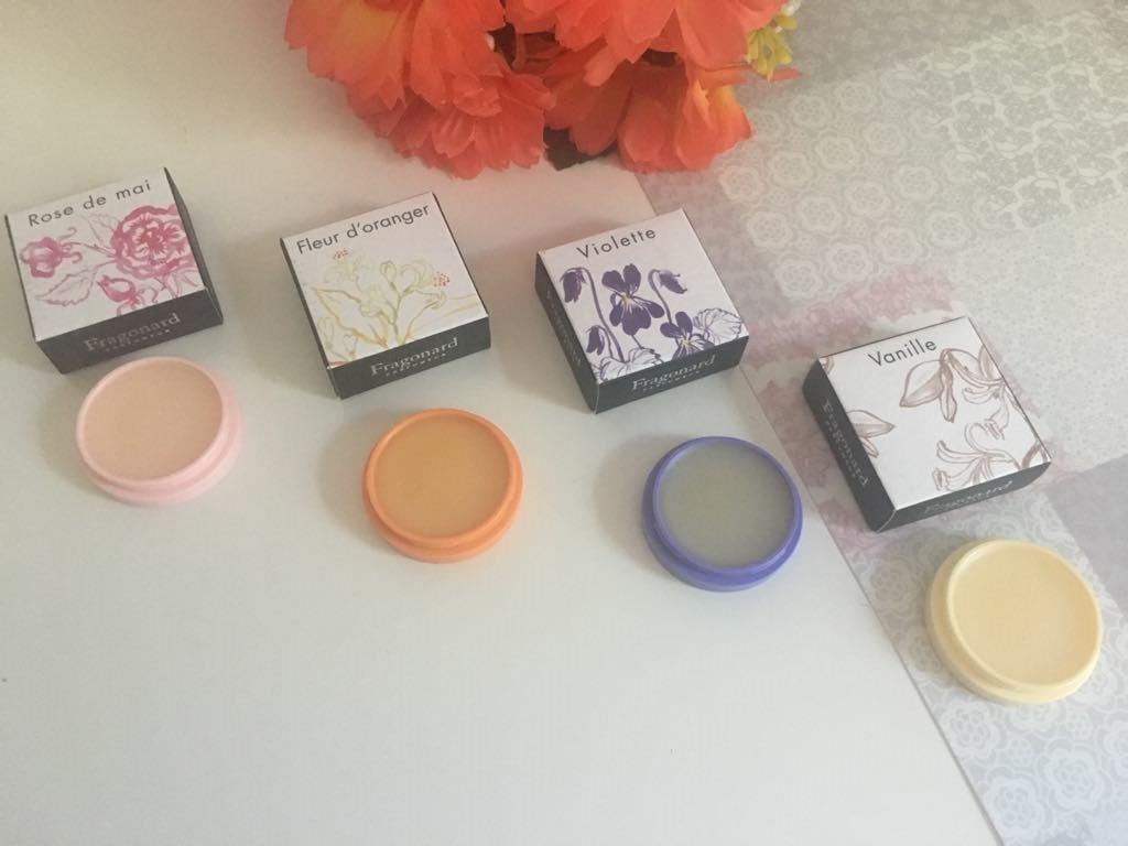 La întâlnirea de bloggerițe din Galați-Brăila am primit un pachet extrem de cochet de la Fragonard Parfumeur. Interiorul era ambalat foarte frumos cu o hârtiuță colorată și interiorul era compus dintr-o cutiuță care conținea 4 parfumuri solide. Parfum solid n-am mai folosit din copilărie. Atunci avea mama un parfum care avea o parte solidă și o parte lichidă care se aplica cu un bețișor. Era un parfum tare cochet și scump și apelam destul de rar la el.