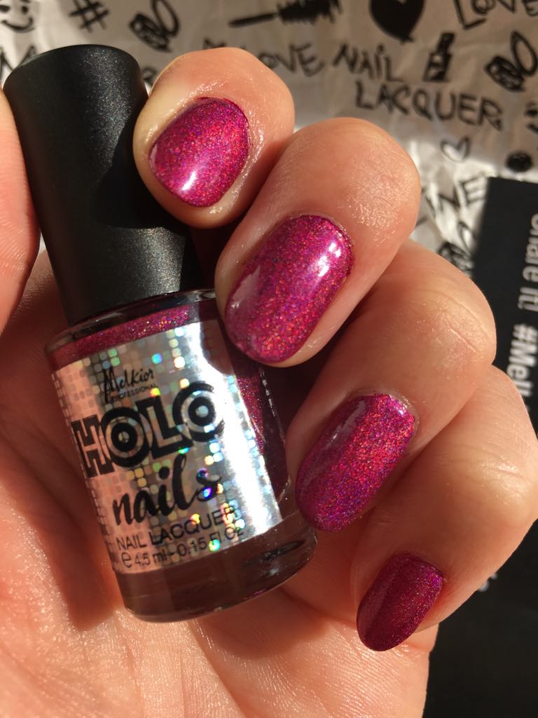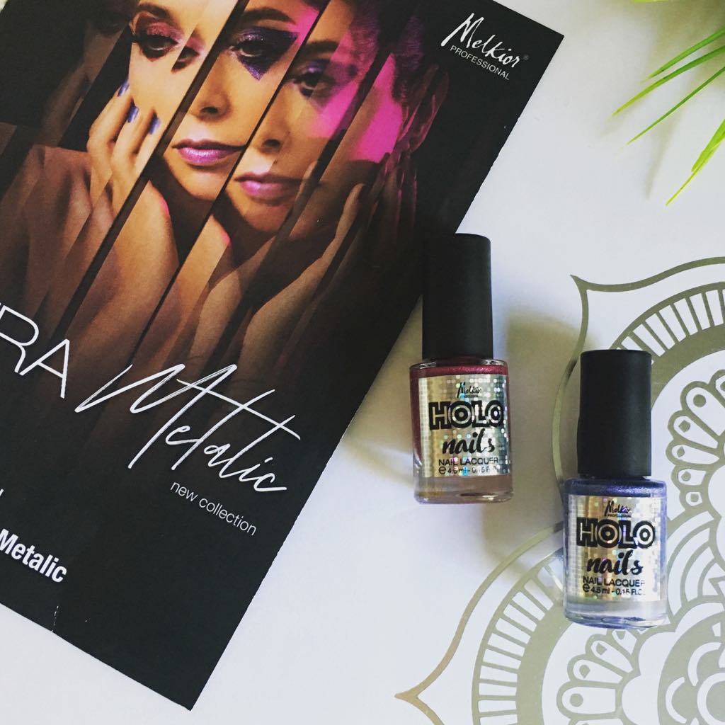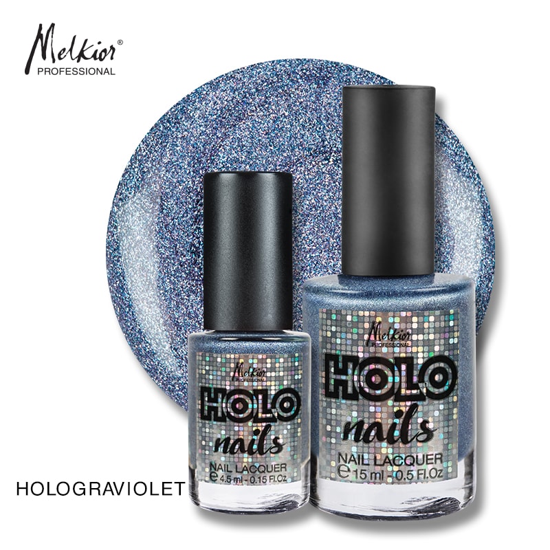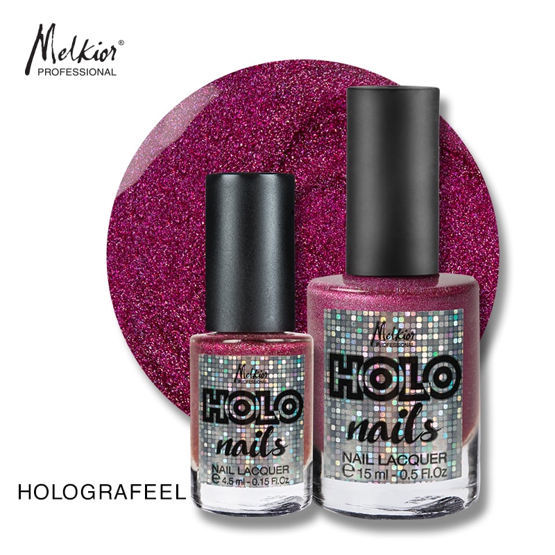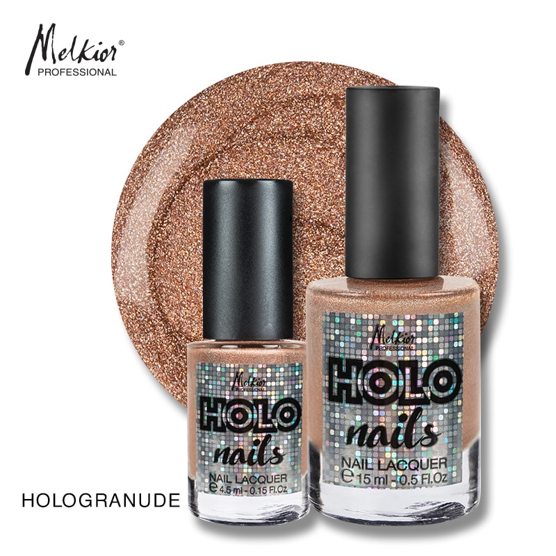 Asorteaza acestui machiaj o manichiura cu efect holografic. Melkior a creat inca 3 nuante perlate de oja care se gasesc atat in sticluta de 15ml, cat si in sticluta de voiaj, de 4,5ml. Fiecare sticluta are o forma ergonomica, sistem auto de curatare a sticlei si este prevazuta cu pensula lata pentru aplicare rapida.