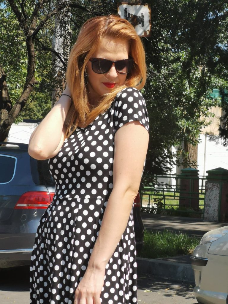 Rochiile cu buline sunt preferatele mele! Iti sta foarte bine cu aceasta tinuta!