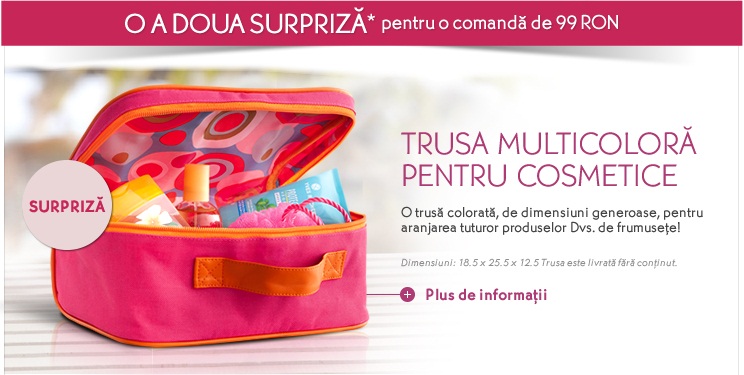 2. O surpriză pentru o comanda de minim 99 RON : Trusă multicoloră pentru cosmetice