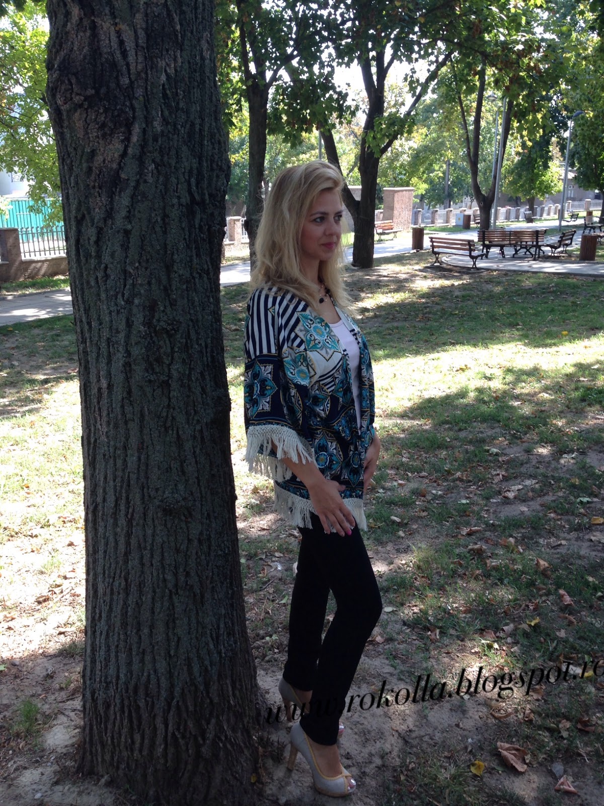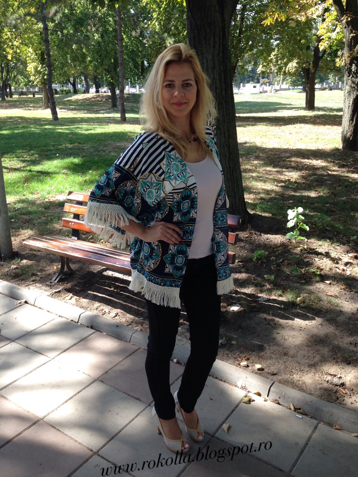 Aceasta este al doilea kimono pe care îl am și îmi place foarte mult. Combinația de verde, alb și negru este perfectă.