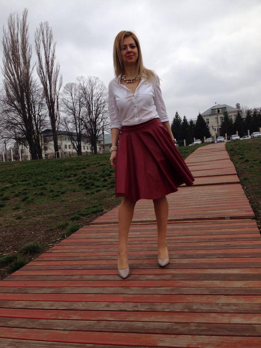 Mi-am cumpărat o fustă de care sunt extrem de încântată. Fusta este până la genunchi și cade foarte frumos pe lângă corp. Materialul este dintr-o imitație de piele dar este foarte moale și plăcut la atingere. Mi-a plăcut și faptul că în partea din spate are elastic așa că îmi va veni și dacă mai pun 1 kg! Păcat că nu mai este pe stoc și poate vor reactualiza stocul pentru că am dat foarte puțin pe ea.