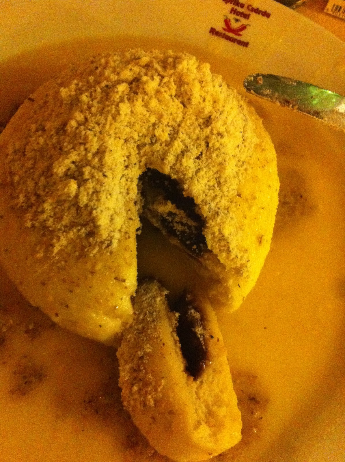 Următoarea seară ne-am luat o mâncare delicioasă. Eu mi-am luat o tavă cu o bucată mare de ciolan care avea o carne foarte fragedă cu garnitură de cartofi mărunțiți și varză roșie călită împreună cu un sos deosebit iar iuby și-a luat o tigaie cu carne de porc împreună cu piftele de cartofi, un sos de ciuperci foarte gustos care trebuia amestecat cu macaroanele.