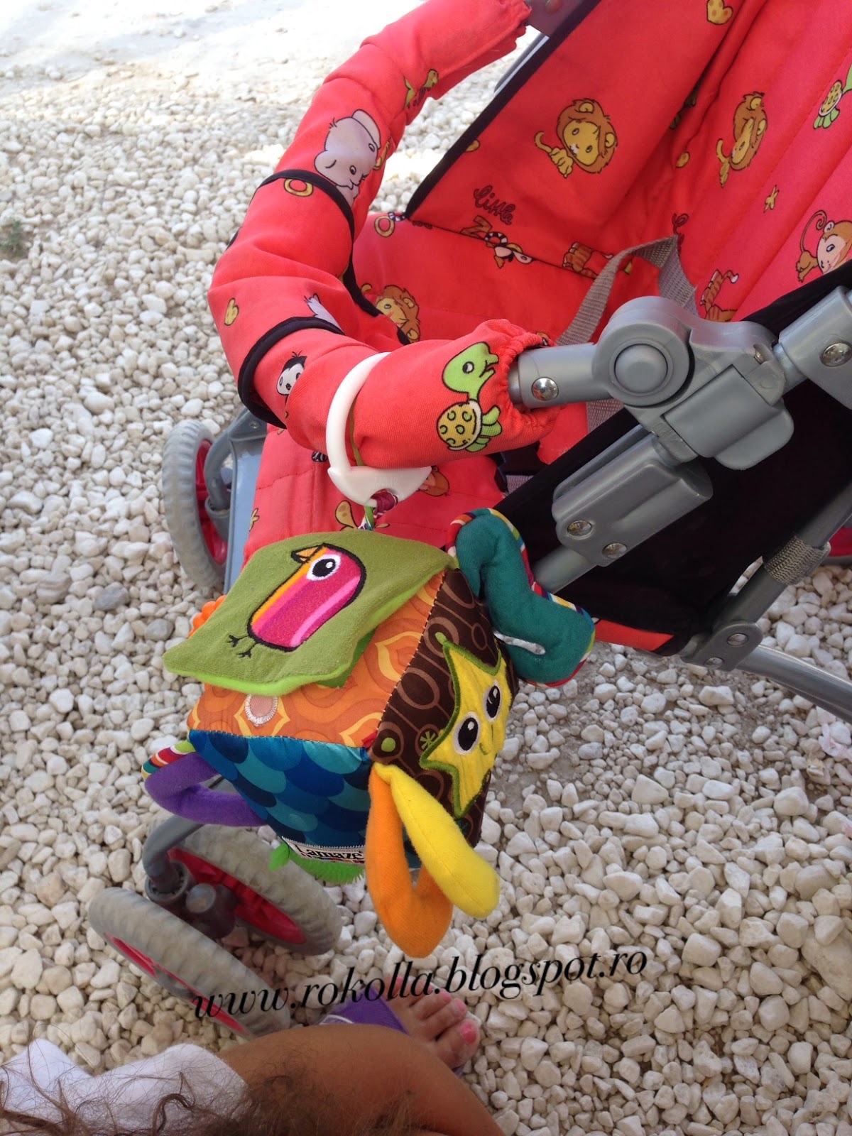 Atunci când am dat comanda mi-am mai cumpărat un cardigan pe care vi l-am arătat aici. Vă povesteam că pe site au foarte multe lucruri și nu puteam să nu îi cumpăr Bobocelului meu ceva așa că am ales și pentru ea o jucărie. O jucărie interesantă și măricică pe care am avut-o și în vacanță și cu care s-a jucat ba prin cameră, ba a stat atârnată de căruț. Jucăria o găsiți .