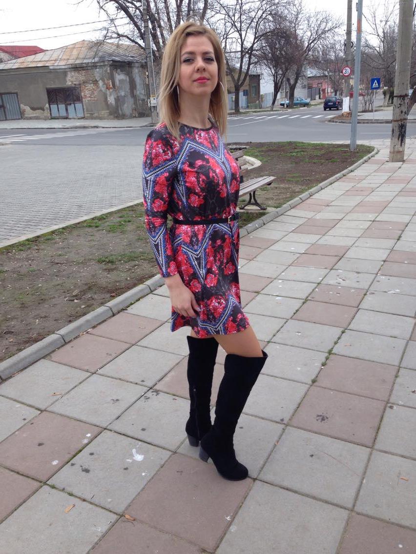Rochia este simpatică dar printul vintage este …. ciudat. Dacă te uiți la rochie atunci când o vezi în șifonier ai impresia că o ai de câțiva ani buni. Este genul ăla de material lucios, puțin elastic și cu acel print. Nu pot să explic în cuvinte realitatea. Cu alte cuvinte, după ce am îmbrăcat-o am realizat că nu este chiar atât de urâtă dar prima oară când am văzut-o am fost un pic dezamăgită. Nu am reușit să fac foarte multe poze. Vremea nu a fost foarte prietenoasă cu mine.